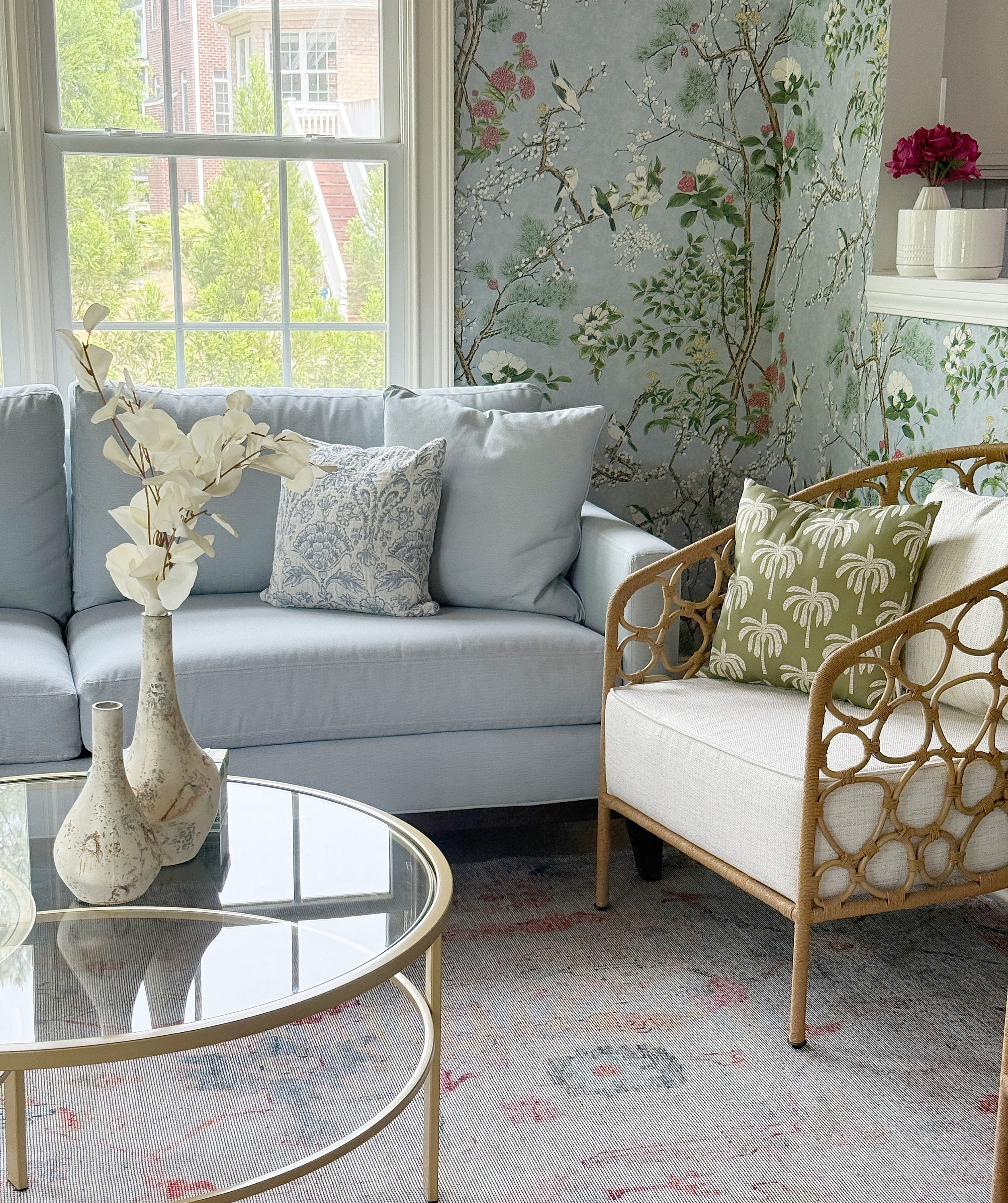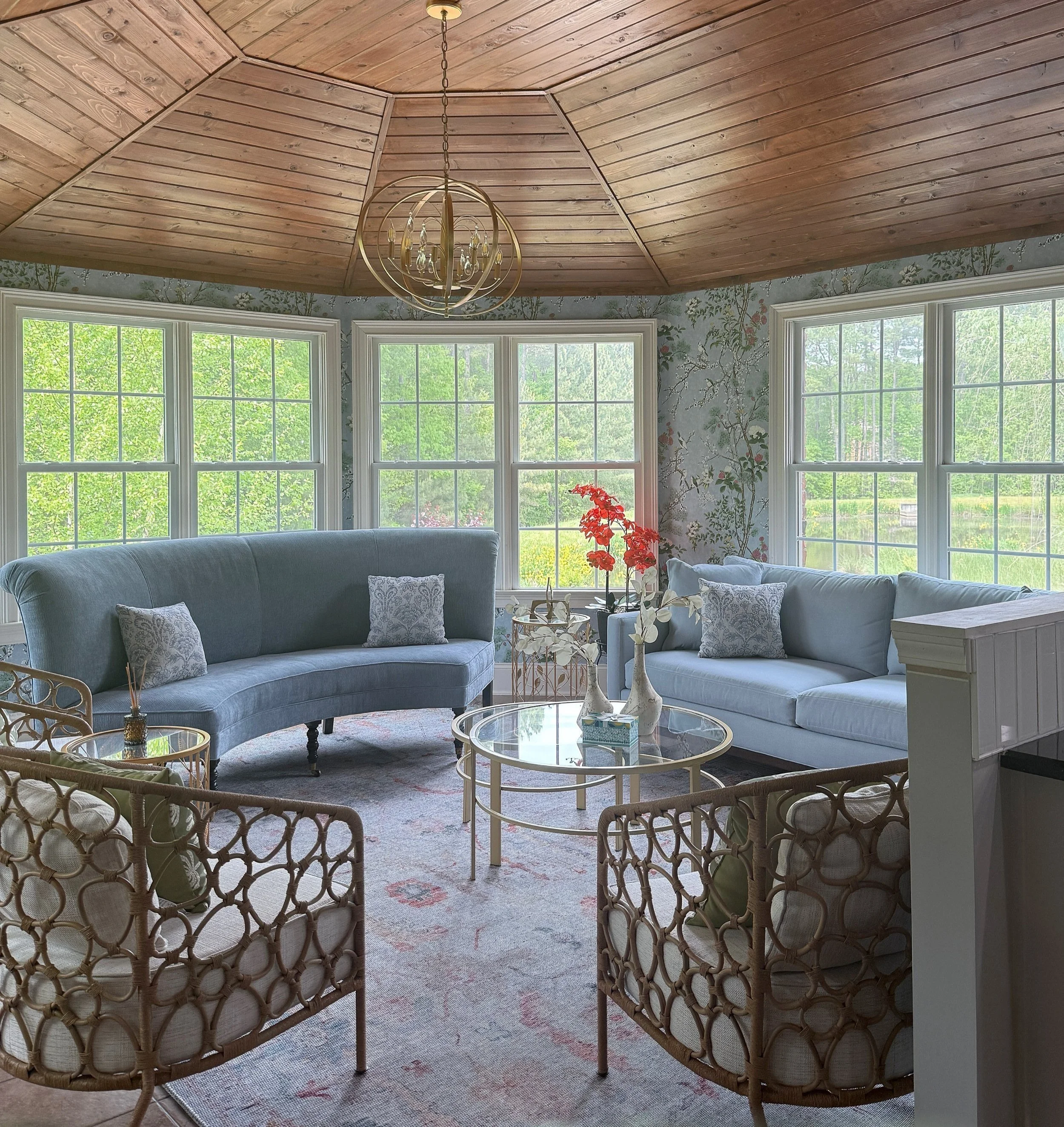The living room has a coastal vibe that I wanted, and she understood from the get-go. She worked with my ideas and had fantastic attention to detail. Everybody loved the comfy furniture and gaming area. My favorite room is the sunroom. The wallpaper and the jungle theme are precisely what I wanted. Farha transformed my entire space from dark traditional decor to a very modern space. She made the whole process stress-free and enjoyable for me.